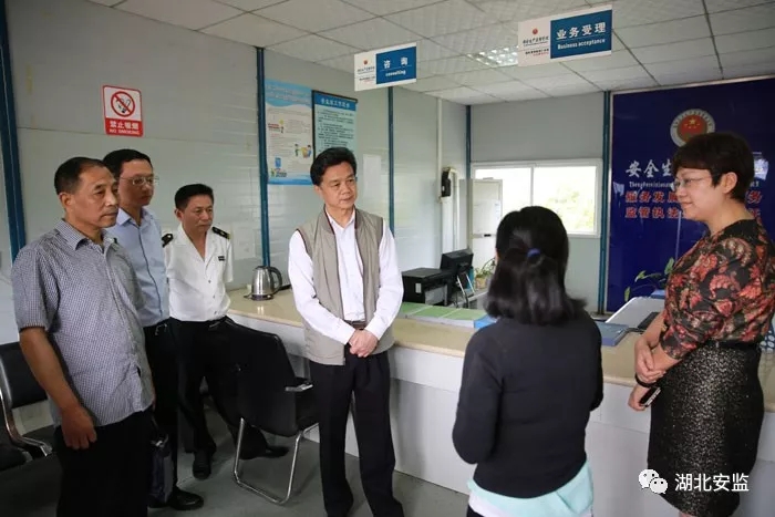 5月8日,省安监局党组书记、局长郭唐寅,省安监局党组成员、副局长闸源虹一行到嘉鱼县武汉新港潘湾工业园区现场调研指导安全生产工作。咸宁市委常委杨良锋、嘉鱼县县长胡春雷等陪同调研。